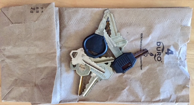 Select a couple groups of ‘treasures’ or sorting materials you already have in your classroom. Put a group of those objects each in its own small paper bag. I used key and buttons this time.